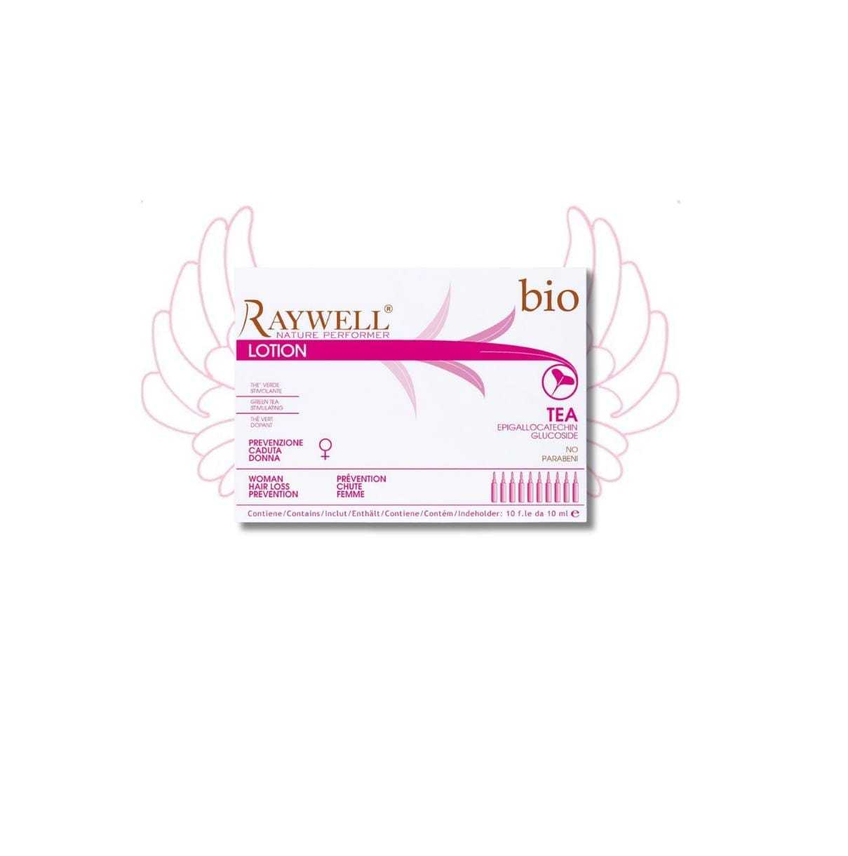 Raywell BIO TEA — це терапевтичний лосьйон у формі ампул, створений спеціально для жінок, які стикаються з проблемою випадіння волосся. Унікальна фітокосметична формула містить екстракт зеленого чаю, олію японської камелії та гіалуронову кислоту з поступовим вивільненням активних компонентів. Засіб активізує мікроциркуляцію у шкірі голови, стимулює ріст нового волосся, сприяє регенерації клітин і живить волосяні фолікули, роблячи волосся сильнішим та здоровішим.